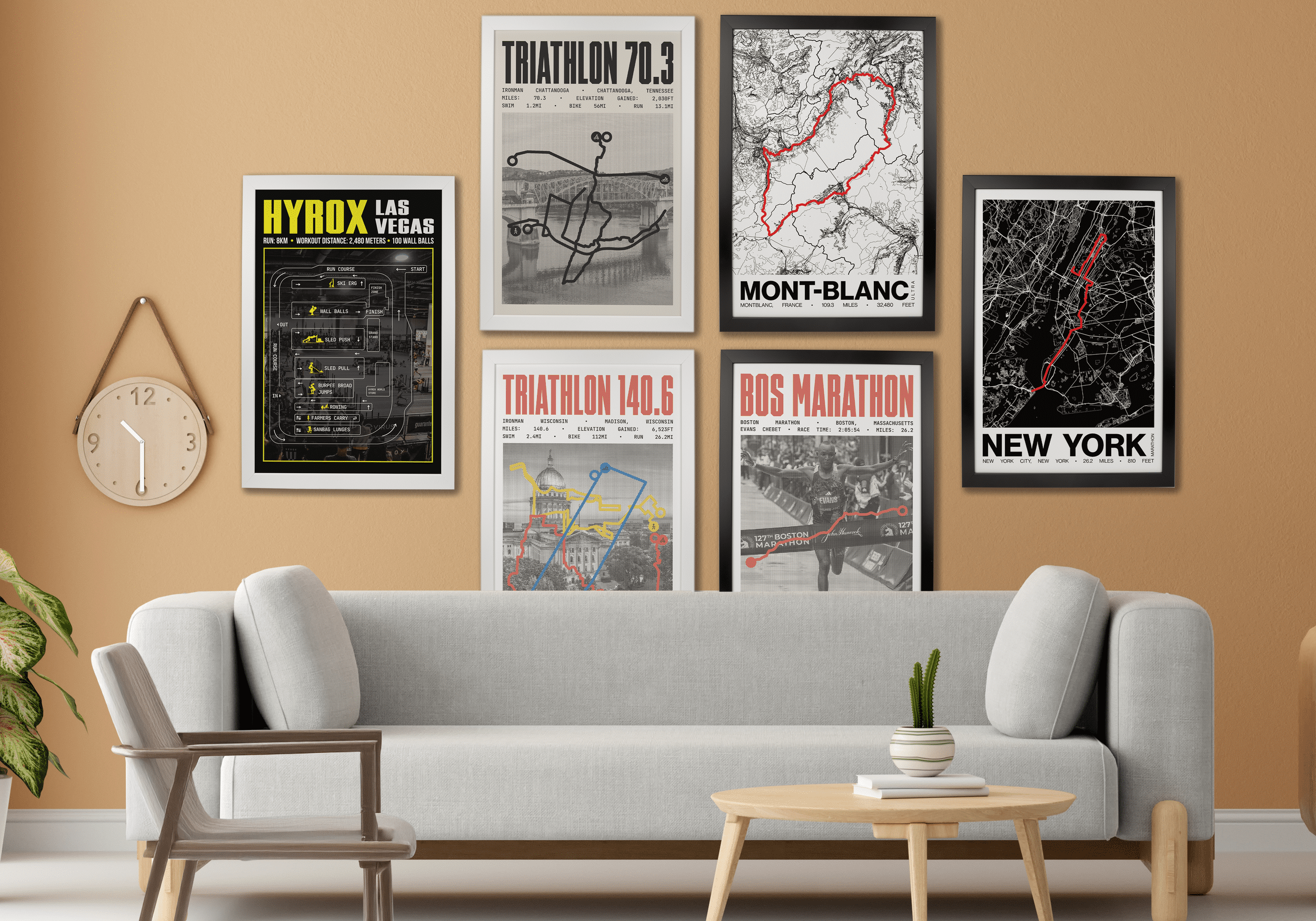 We design custom posters for Marathons, HYROX, Ironman, and Ultra races. If your event isn't listed, you can still customize your own poster to commemorate your achievement.