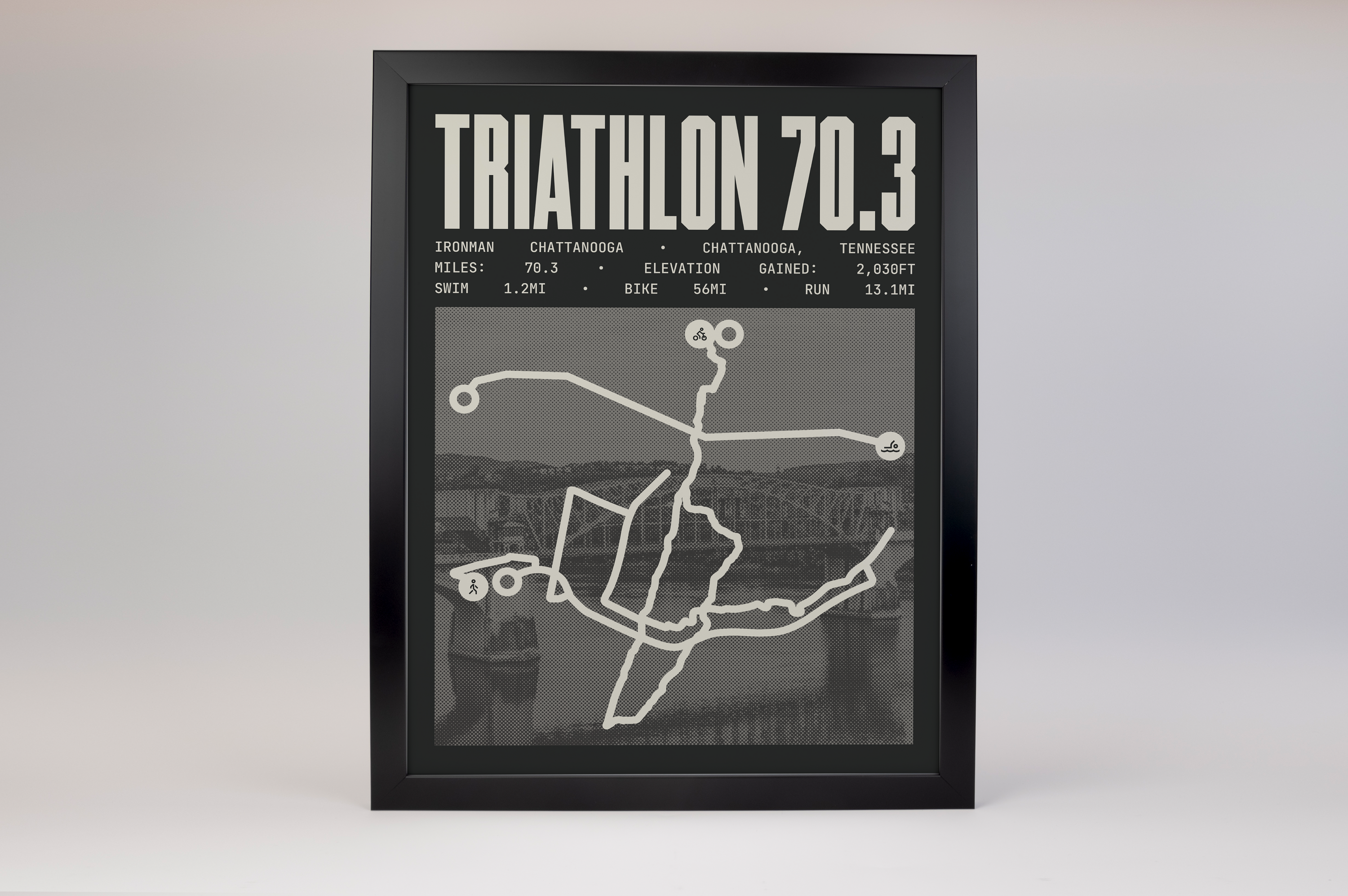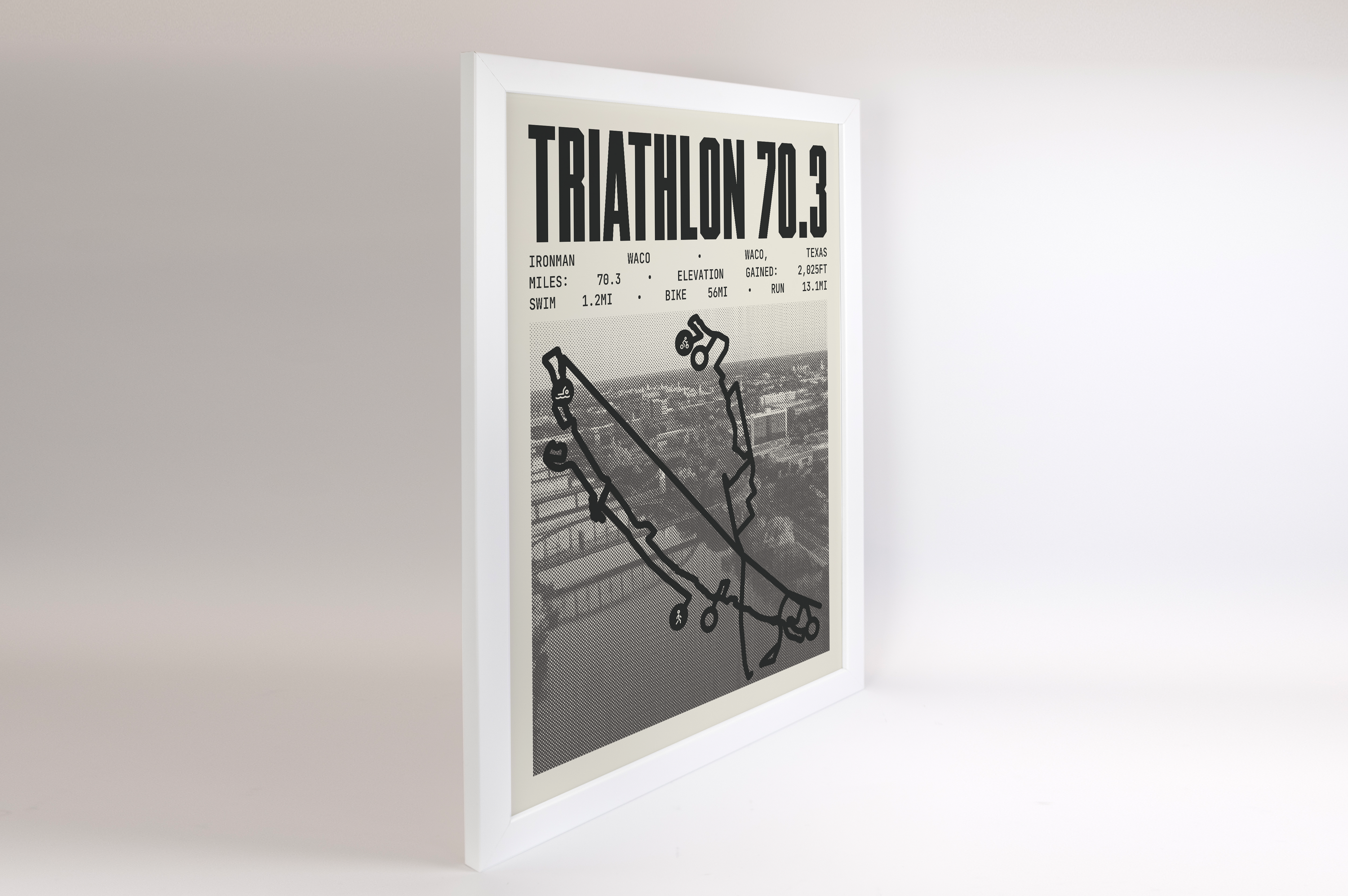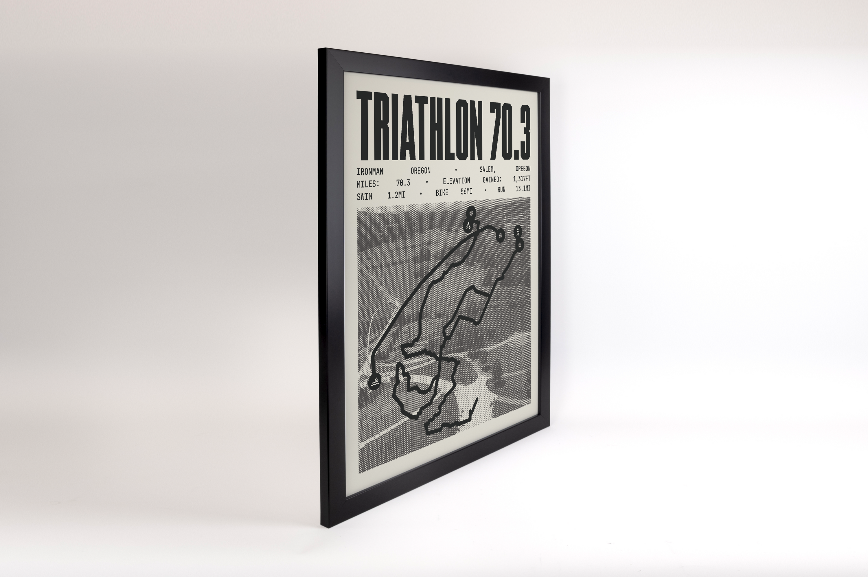 Commemorate your Triathlon 70.3 finish with a premium Map Medal poster. Crafted with high-quality materials, these sleek designs honor your endurance and achievement. Perfect for any space or as a unique gift for the triathletes in your life.