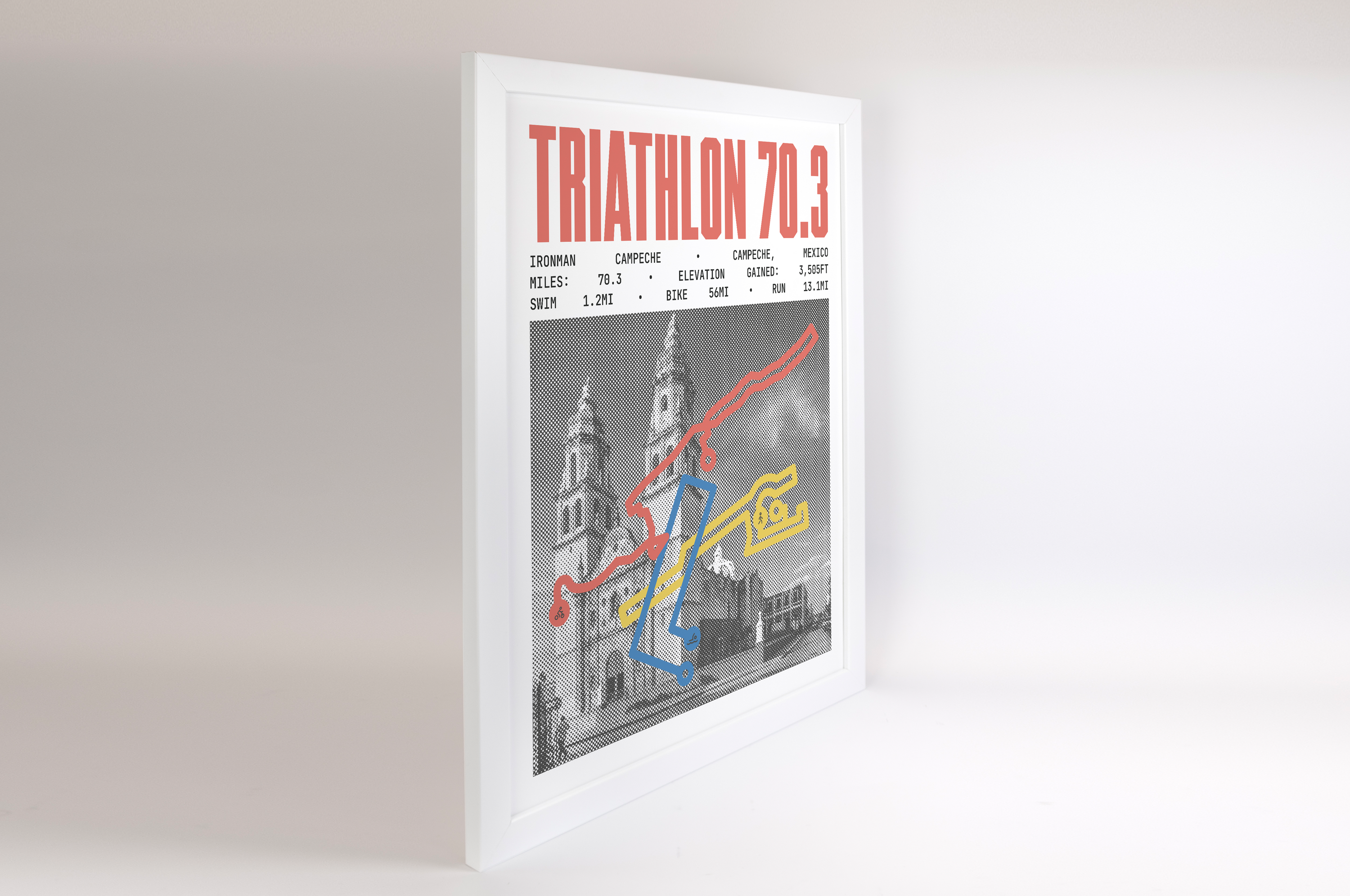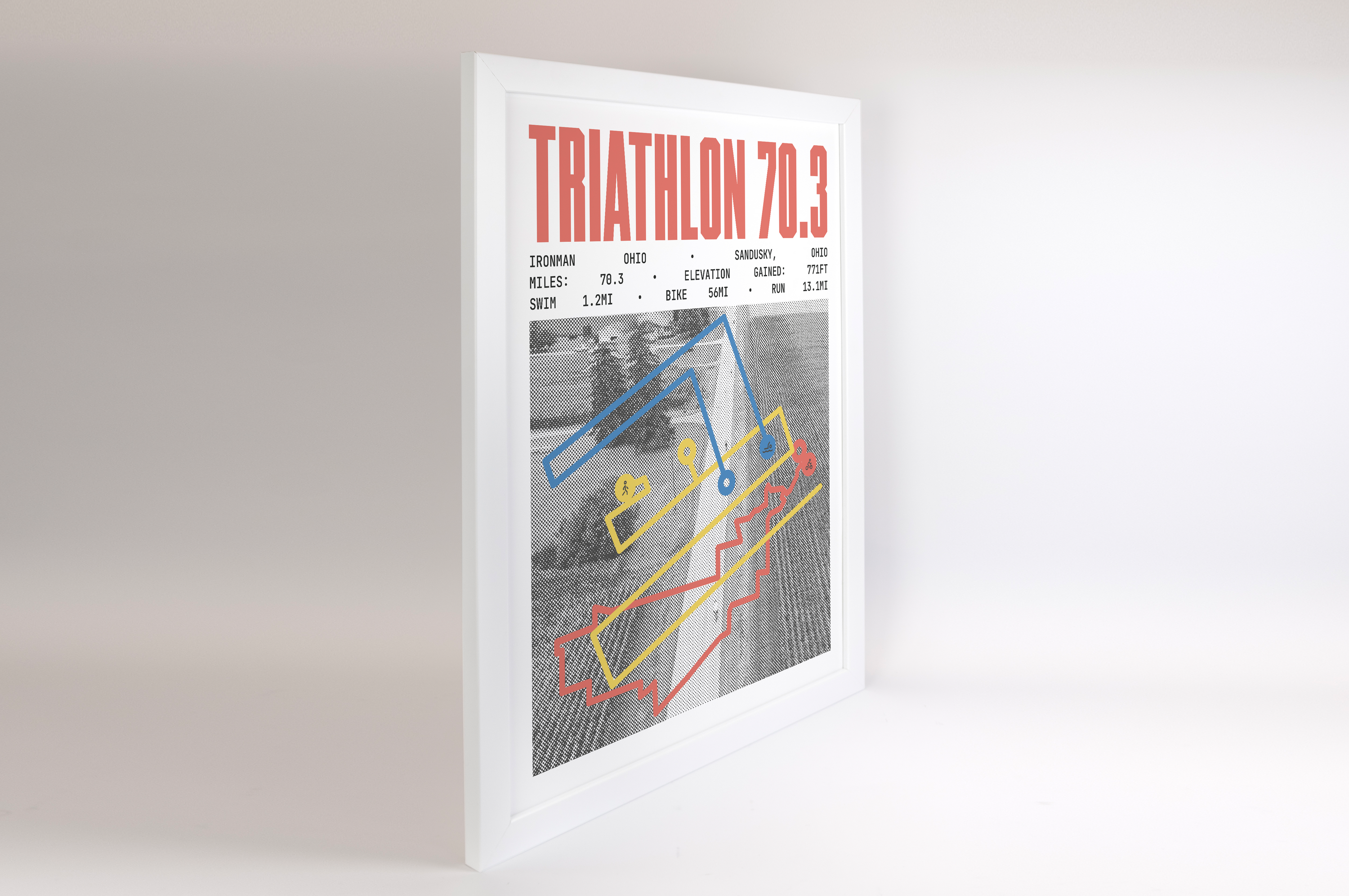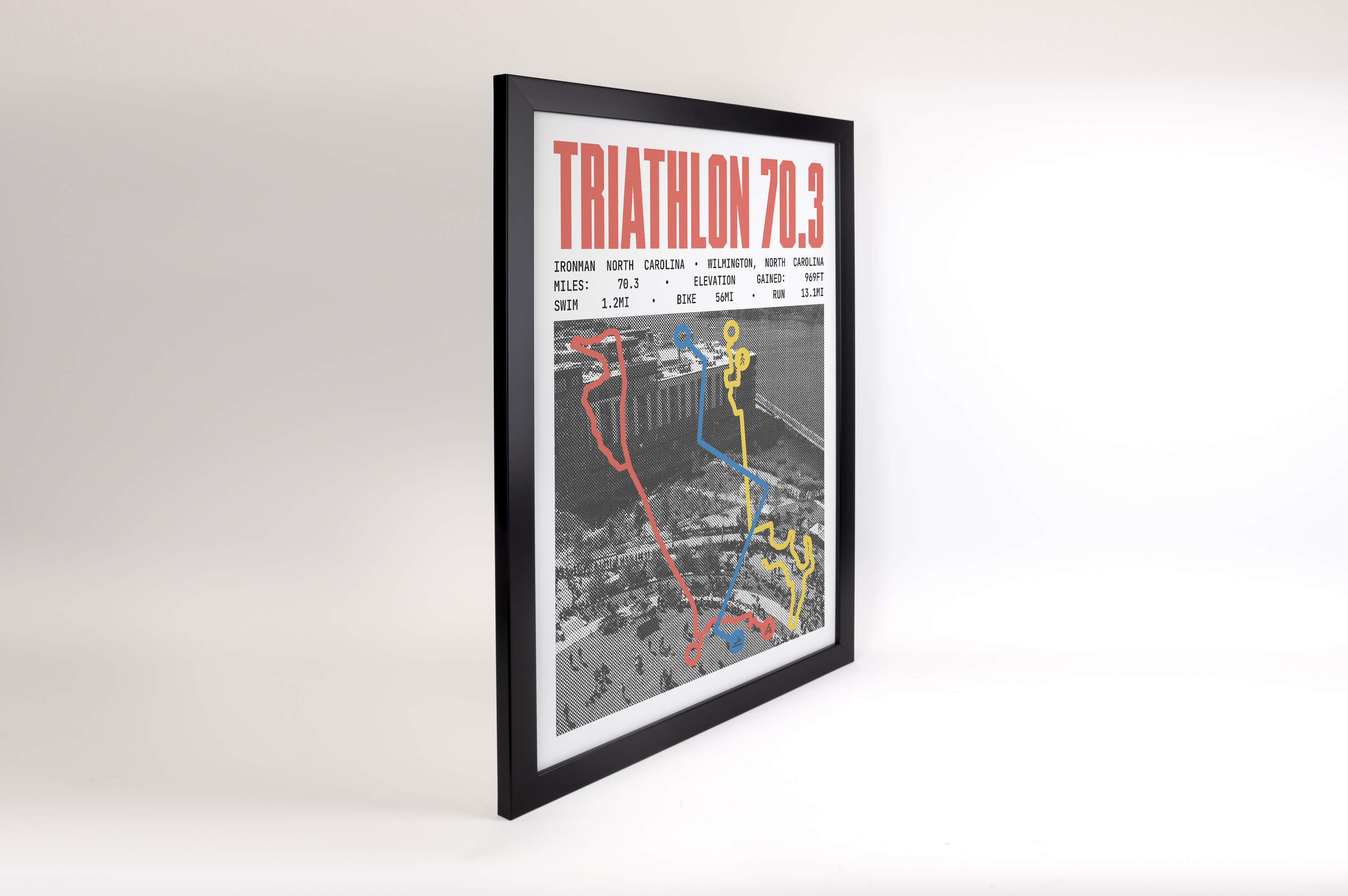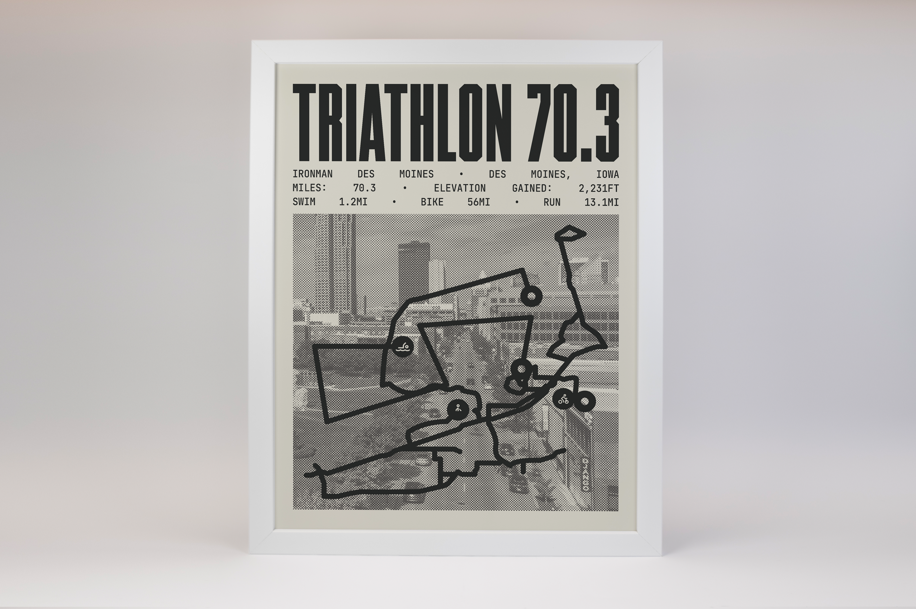 Commemorate your Triathlon 70.3 finish with a premium Map Medal poster. Crafted with high-quality materials, these sleek designs honor your endurance and achievement. Perfect for any space or as a unique gift for the triathletes in your life.